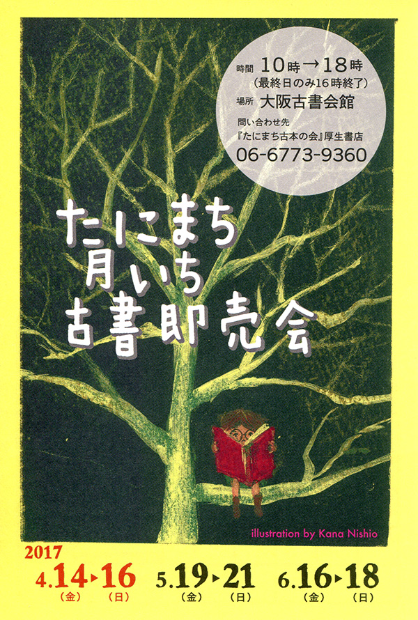 たにまち月いち古書即売会は4月14日(金)から16日(日)までの三日間。大阪古書会館にて。